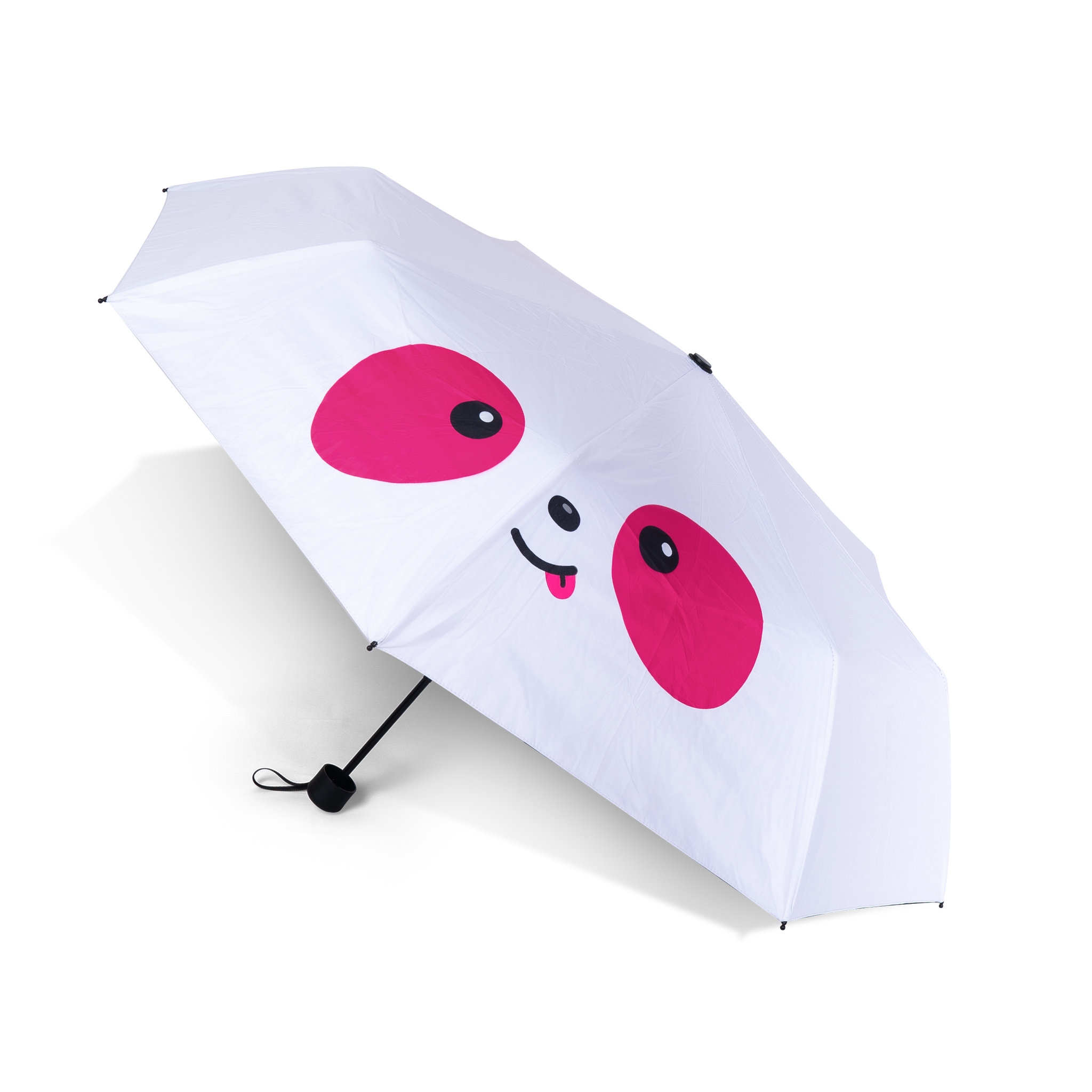 Introducing our premium 3-fold Pau-Pau umbrella with 190T pongee fabric, a durable plastic handle, 8 steel ribs, a metal shaft, a 95cm open diameter, and a compact 24cm folded length, all weighing just 337g and neatly packed in a fabric bag.